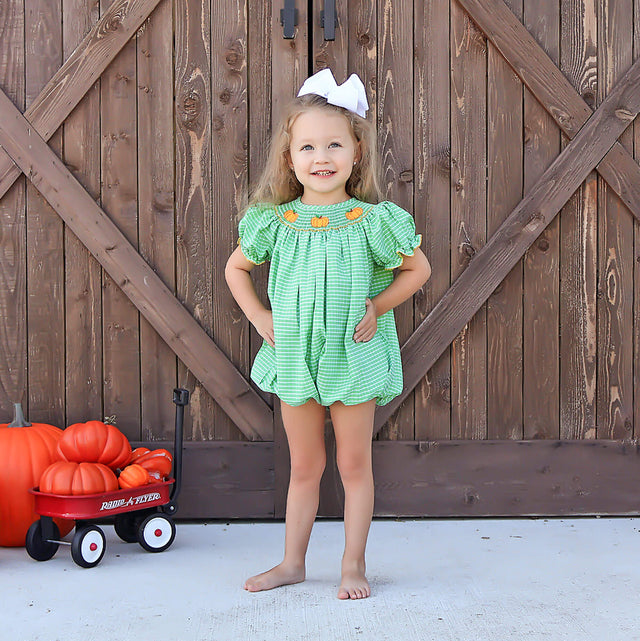 Paradise Pumpkin Green Smocked Bubble