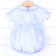 Celebrate any special occasion this Spring with our Light Blue Seersucker Check Collared Bubble. This charming seersucker boy's bubble features short sleeves and a cute collar. Snaps in stride make dressing your little one easy and convenient. Add a monogram to complete the look!
