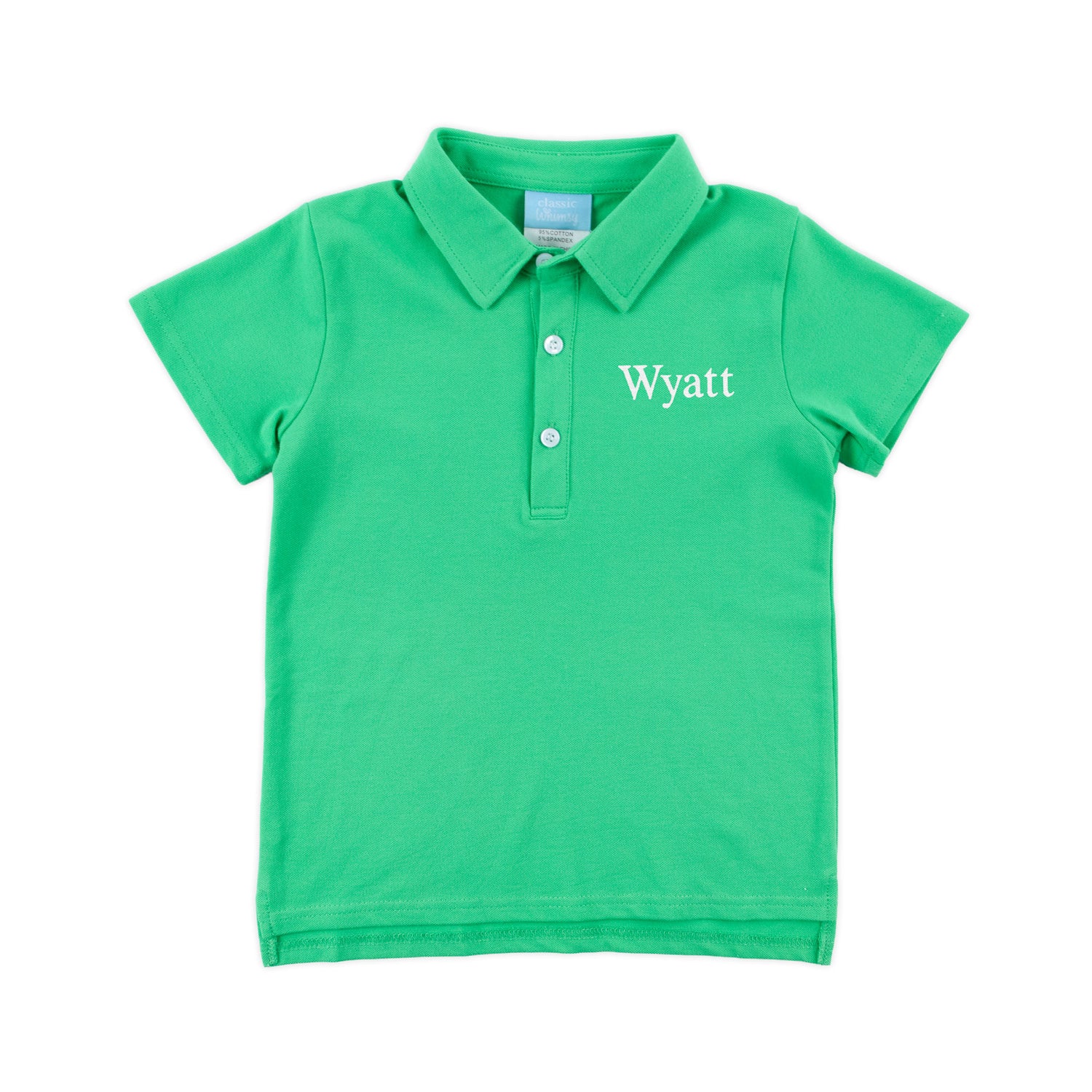 Dress up for playtime in our Solid Green Pique Polo Shirt. This classic short sleeve pique polo, with its timeless style, allows you to mix and match effortlessly with your favorite bottoms. Perfect for various occasions this spring and summer, this shirt brings a playful touch to any day. Consider adding a monogram to personalize your look and make a statement.