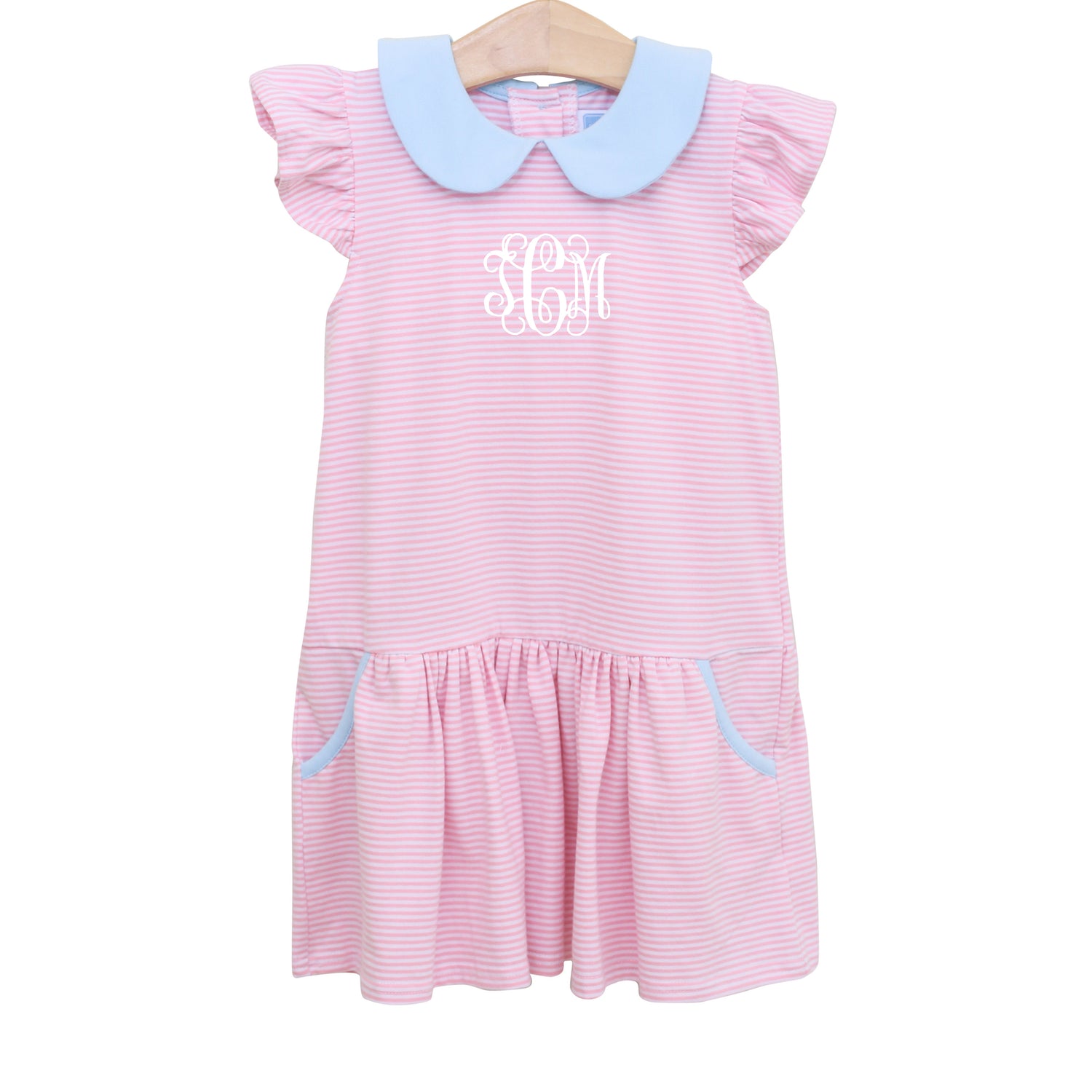 The Genevieve Pink Knit Dress is the perfect outfit for sunny day play! The light blue knit top features flutter sleeves and a classic collar, perfectly paired with coordinating pink striped shorts. Add a monogram to make this charming set uniquely hers!