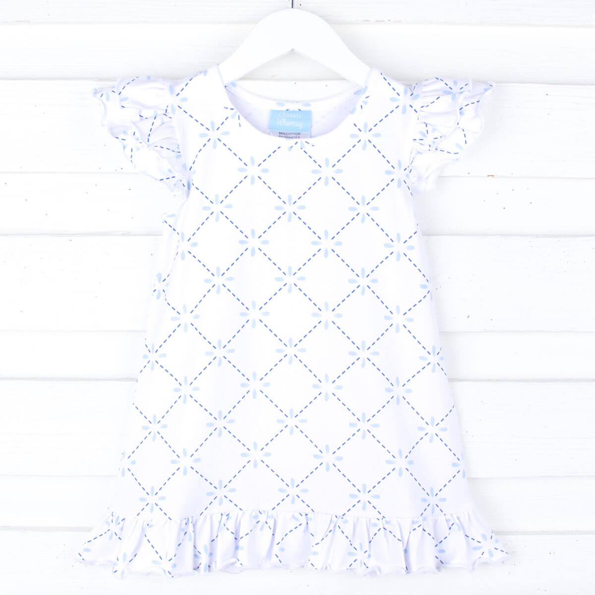 This Touch of Blue Milly Dress is adorable for playtime in any season! The Milly-style dress features flutter sleeves and a charming Touch of Blue print. Add a monogram to make this sweet outfit even more special!