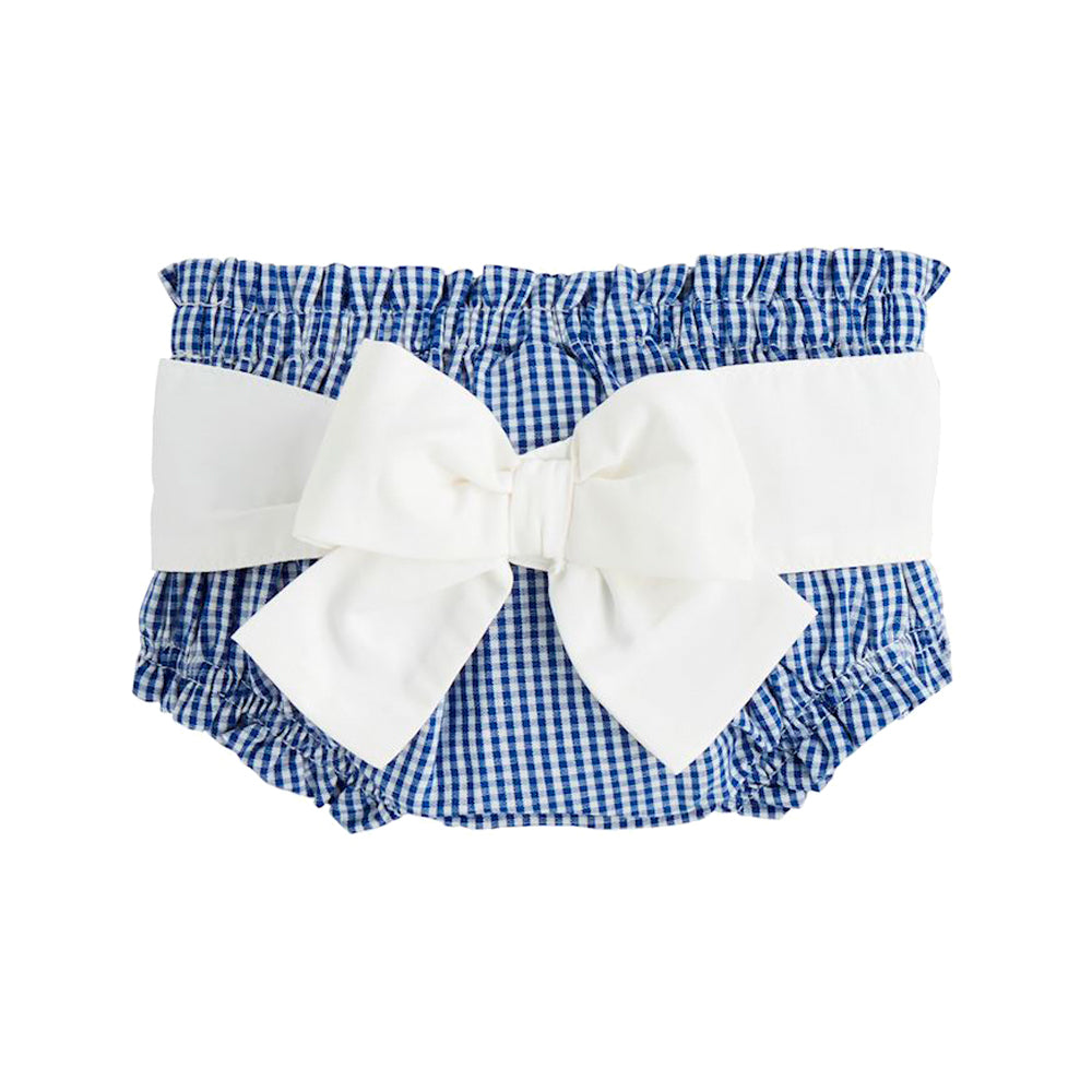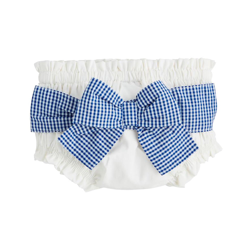 The Navy Check Diaper Cover is a charming addition to your baby's wardrobe, featuring a delightful gingham and poplin ruffle design that adds a touch of classic elegance. The contrasting bow detail enhances its playful appeal, making it perfect for any occasion. Designed for babies aged 3-6 months, this diaper cover ensures comfort and style. The main fabric is a blend of 59% polyester and 41% cotton, providing a soft and durable feel, while the bow is crafted from 100% cotton for a gentle touch against your baby's skin. Ideal for pairing with a variety of tops, this diaper cover is both practical and adorable.