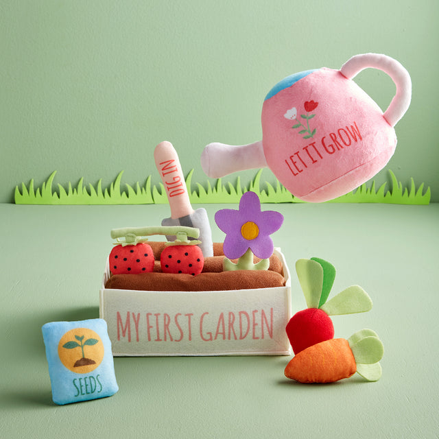 The My First Garden Plush Set is a delightful toy for kids that features a soft plush carrot, tomato, and radish in vibrant colors. These vegetables are perfectly sized for little hands to hold and play with, allowing kids to engage in imaginative play by pretending to plant and harvest their own garden. Not only is this plush set fun, but it is also educational as it introduces children to various types of vegetables and encourages them to learn about gardening. Made with soft and cuddly materials, this toy is ideal for playtime.