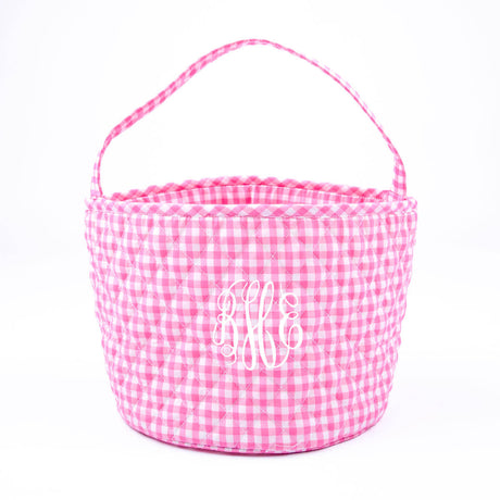 Easter Basket Scalloped Bunny Applique Pink Gingham