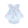 Bunny Smocked Turquoise Angel Sleeve Bloomer Set