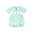 Easter Bunny Smocked Blue & Green Gingham Collared Bubble