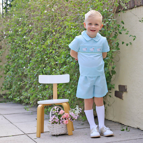 $44.99Unit price /Unavailable in this combinationWhite Cross Smocked Short Set Light Blue Pique