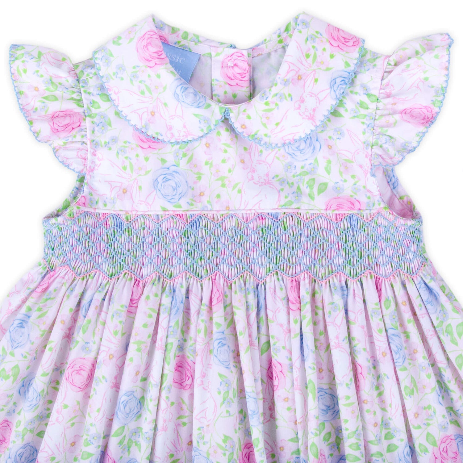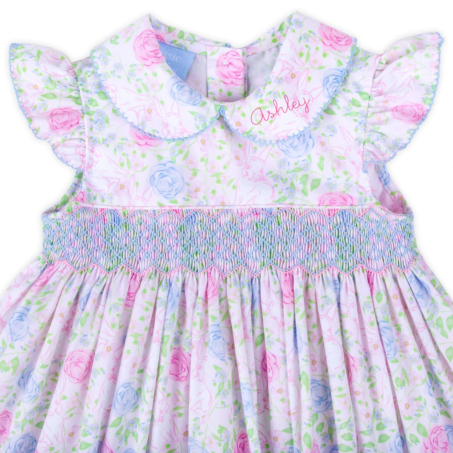 Get your little one ready for Easter in the most adorable way with our Botanical Floral Bunny Geo Smocked Collared Dress! This darling dress features a playful pink floral and bunny print, perfect for the season. With a sweet geometric smocking waist, a charming collared neckline, and flutter sleeves, it adds the perfect touch of girly sweetness. Ideal for Easter festivities, this dress is sure to make your little one’s celebration even more special!