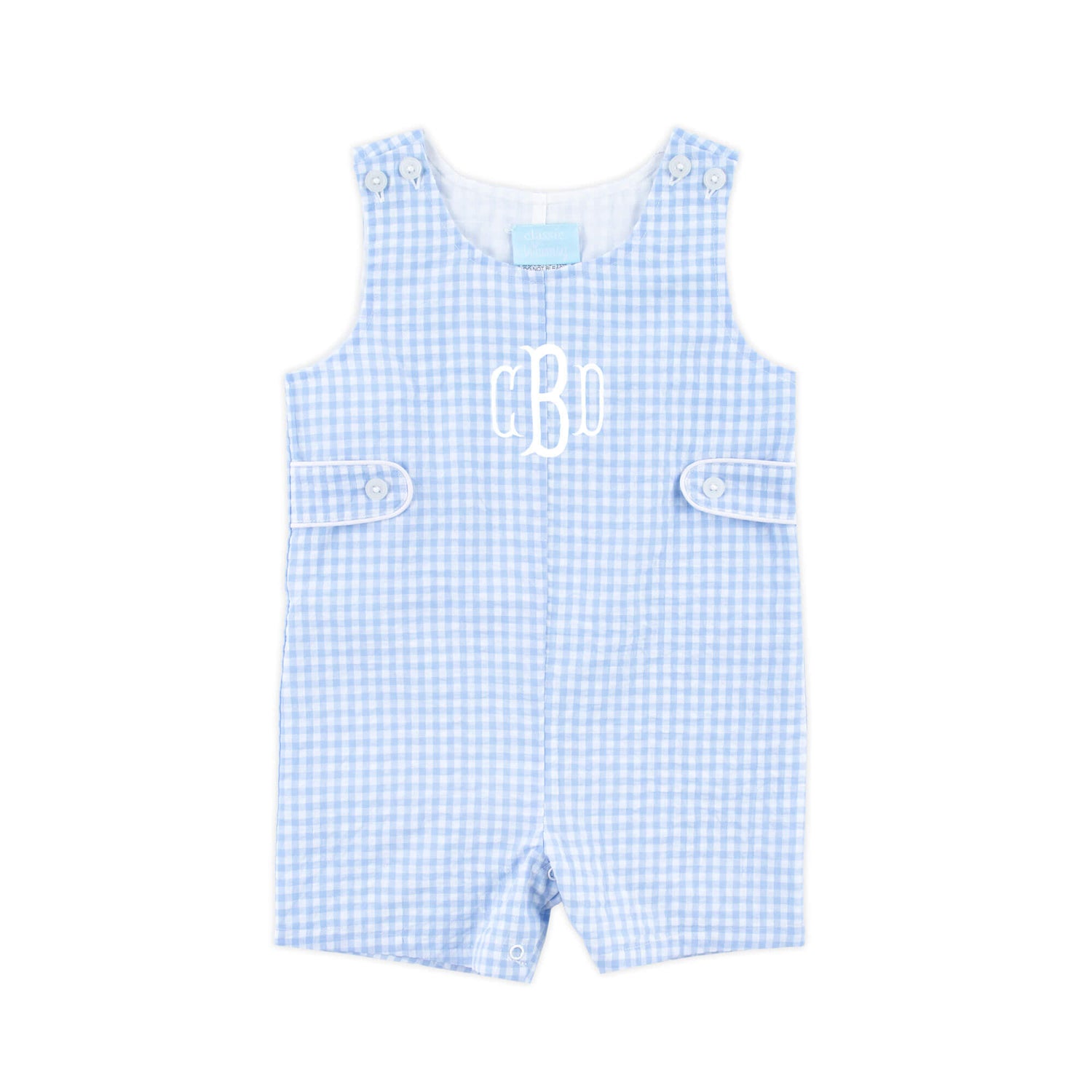 This French Blue Gingham Jon Jon is a stylish and comfortable outfit, perfect for any sunny day. The blue gingham Jon Jon features side tabs that enhance its classic appeal. With shoulder buttons and snaps in the stride for easy changes, it is both practical and cute. Personalize the look with a monogram!