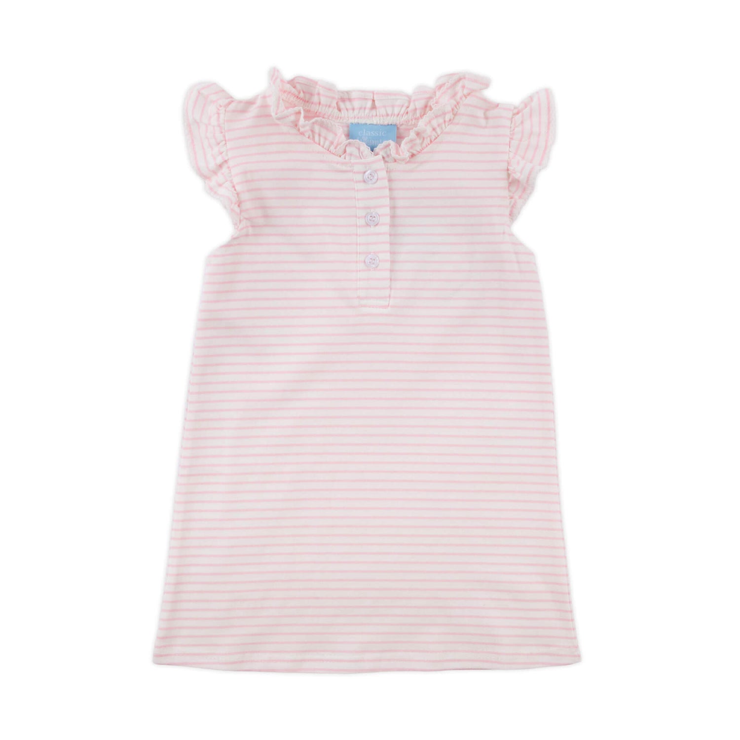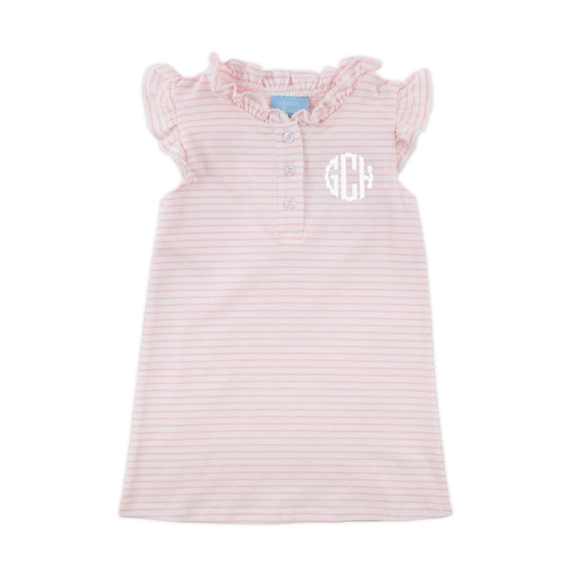 Elevate playtime with our Light Pink Stripe Nicole Dress! This Nicole-style dress features delightful ruffle trim, front buttons, and two cute ruffle pockets. Complete the look with a cute monogram for an extra touch of charm. It's the perfect outfit for playtime.