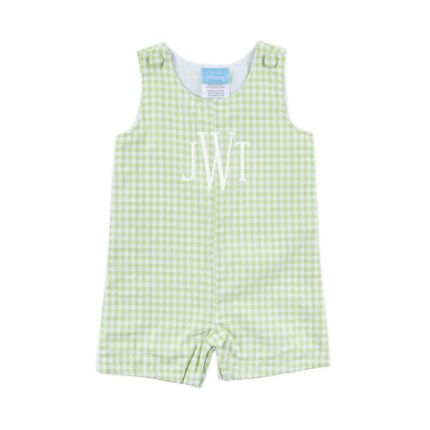 This Spring Days Light Green Gingham Jon Jon is a wonderful choice for spring days and special moments. Designed in light green gingham, it features shoulder buttons and snaps in stride for easy changes. Add a monogram to make this outfit feel extra special.
