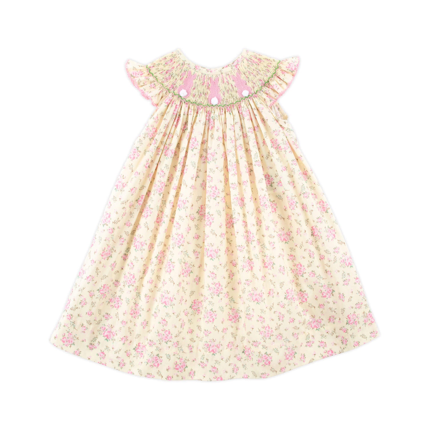 Celebrate Easter in our cheerful Fluffy Bunny Yellow Floral Smocked Dress! This delightful pale yellow rose-print dress is adorned with charming smocked pink bunnies, flutter sleeves, and dainty pink picot trim, adding a touch of springtime magic. Perfect for Easter egg hunts, Sunday church, and family celebrations, your little one will look as sweet as the season itself!