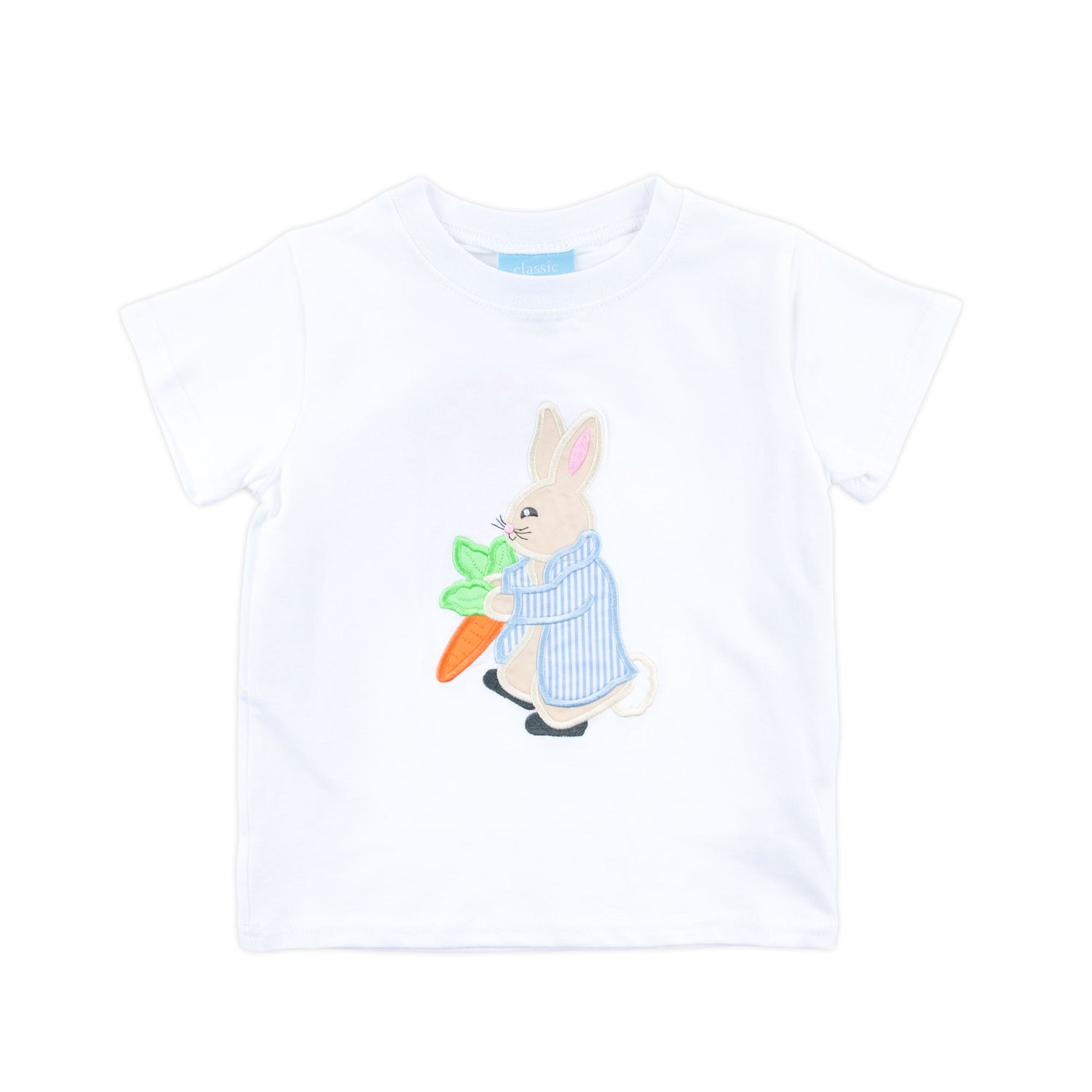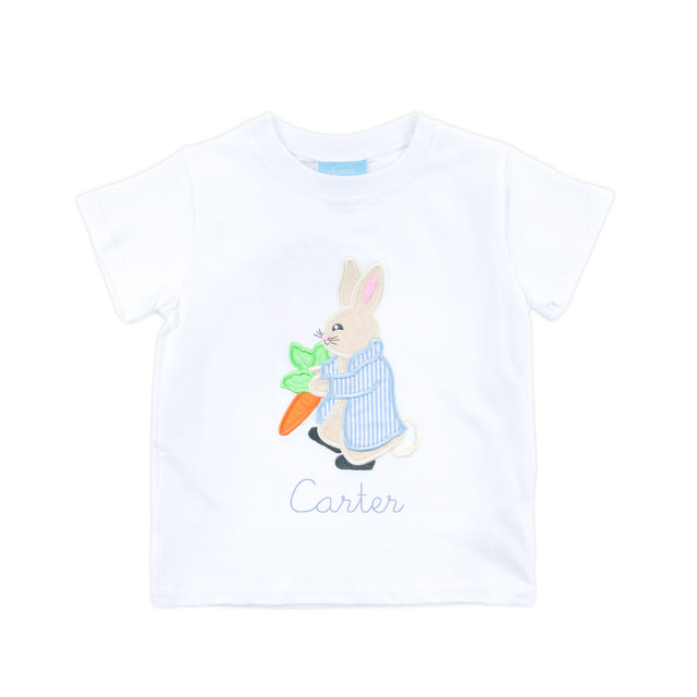 Prepare for Easter in style with our Storybook Rabbit Short Sleeve Shirt. This white knit shirt features a rabbit appliqué inspired by our favorite book character. Add a monogrammed name to complete your Easter look.