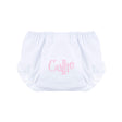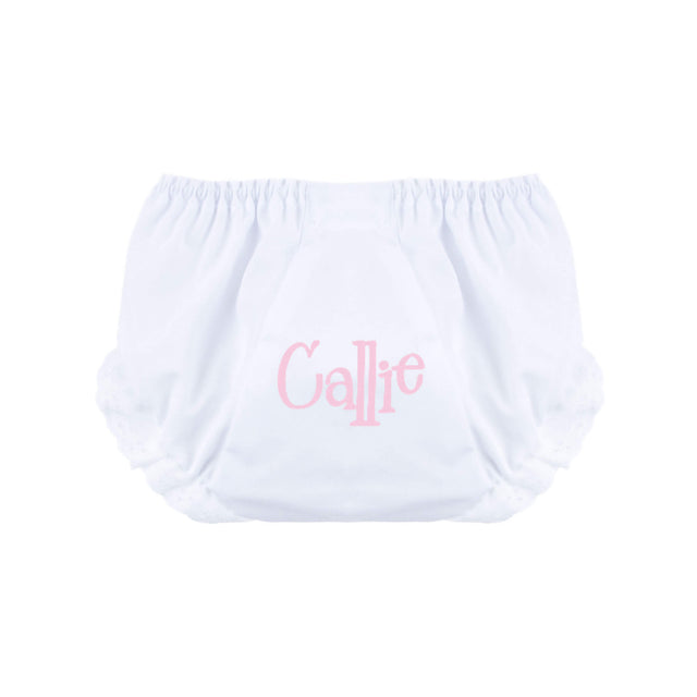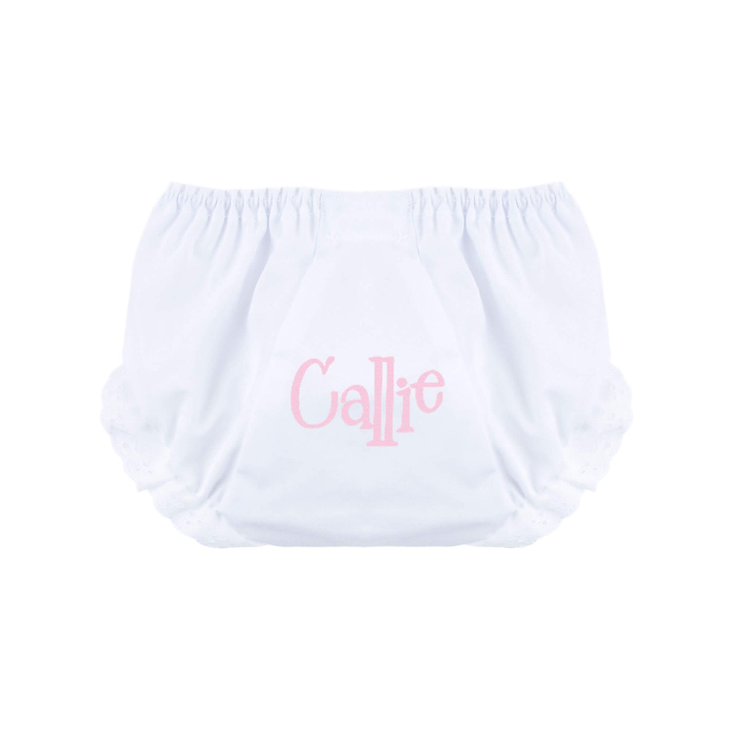 These classic girl's bloomers with eyelet trim are a perfect match to any outfit! Add a monogram to personalize the look. Sizes P1-24m are baby girl diaper covers. Sizes 2T-6 year are toddler and big girl panties.