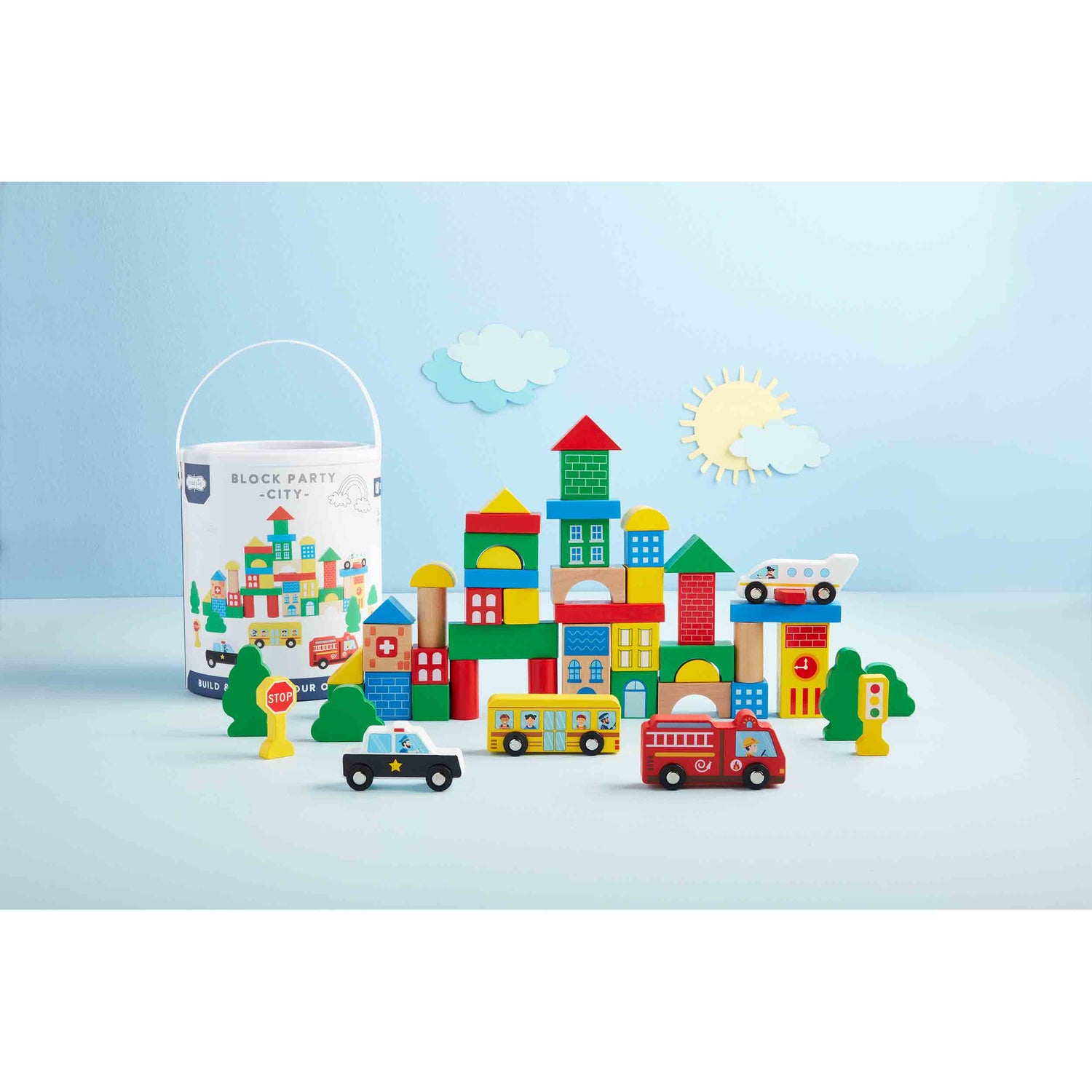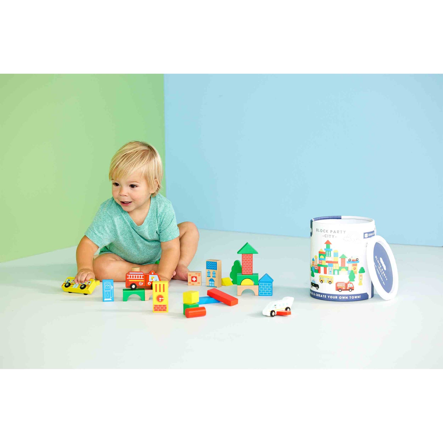 Build, play, knock it down, repeat with our adorable City Block Party Set. The wooden city block set comes with 50 pieces! Let your little one create their own city and tower full of bright colors for hours of endless fun. This toy is perfect for children ages 2 and older for playtime.