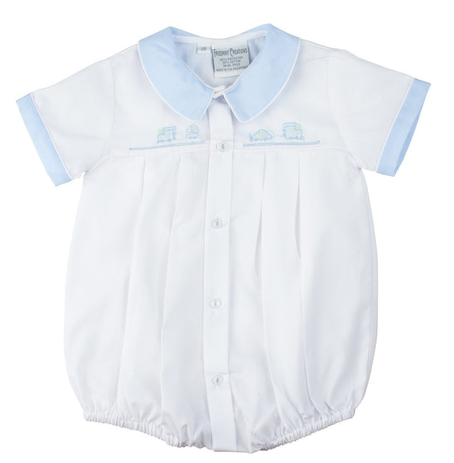 Embroidered Train Blue and White Collared Bubble