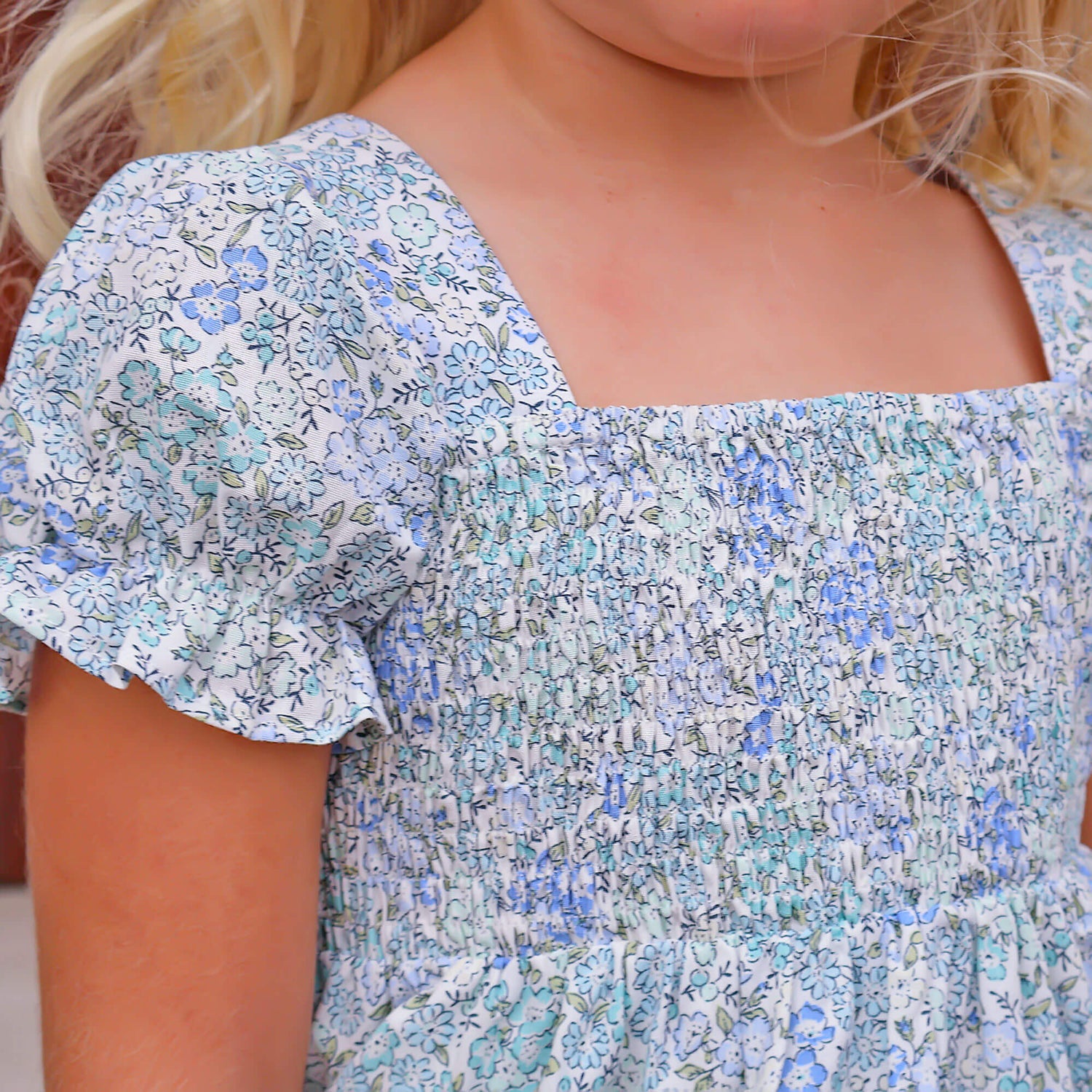 This Enchanted Florals Smocked Hannah Dress brings the freshness of a garden to your wardrobe. The Hannah-style dress is adorned with a stunning blue floral print, capturing the essence of blooming flowers. The stretchable smocked bodice not only adds comfort but also accentuates the charming silhouette, complemented by adorable bishop sleeves.