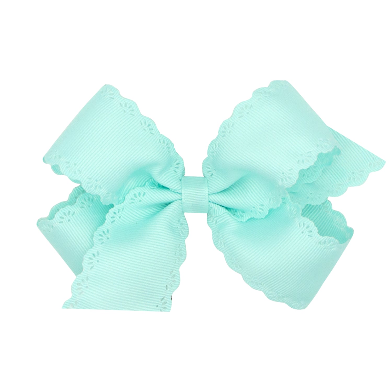 This small grosgrain bow with a delicate floral eyelet embossed edge adds a soft and pretty touch to any outfit. This bow is sure to stay in her hair all day with the patented WeeStay™ no-slip hair clip.
