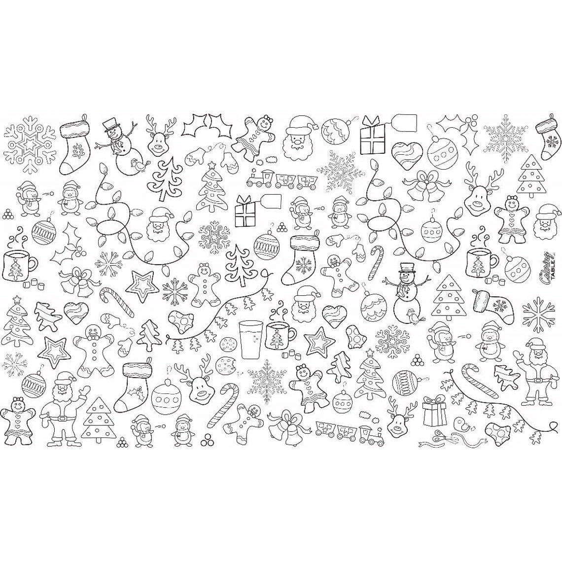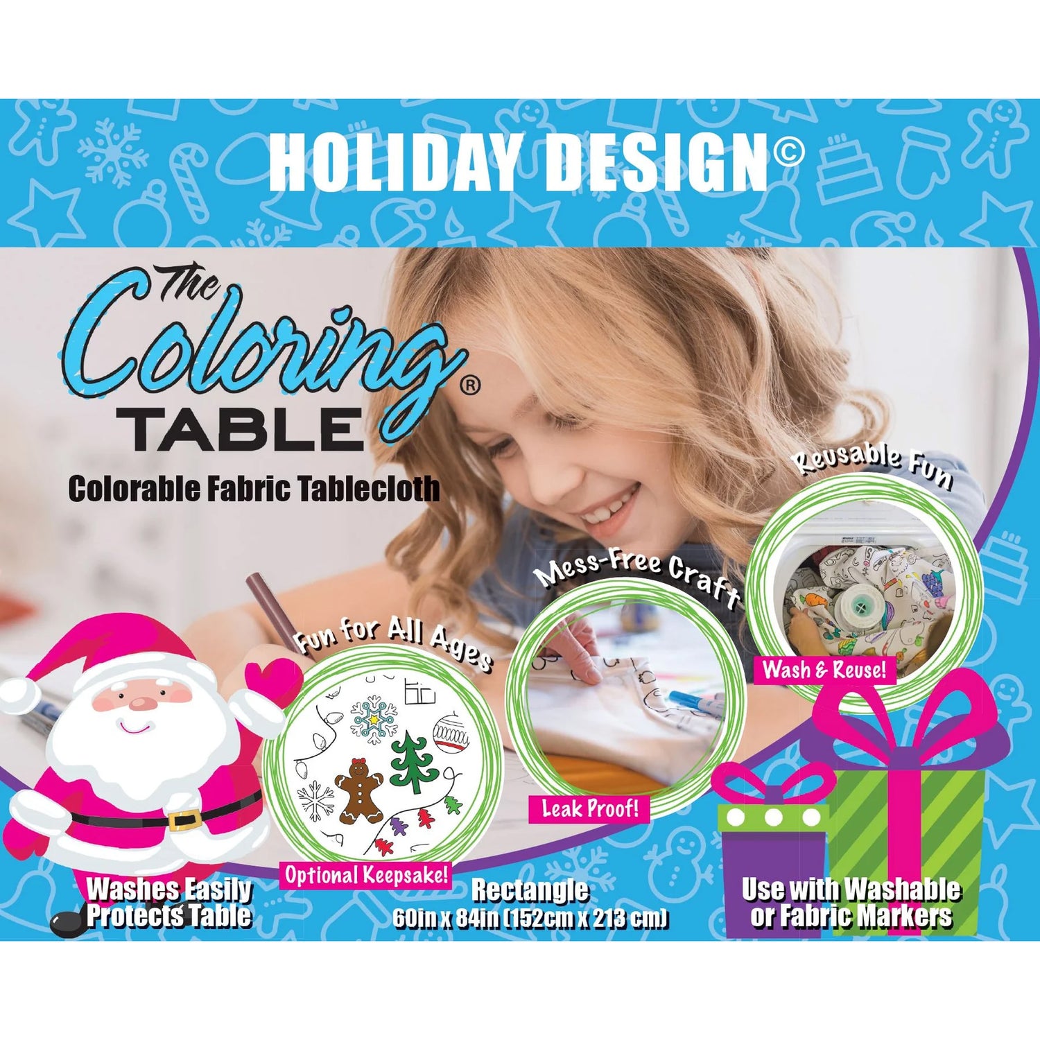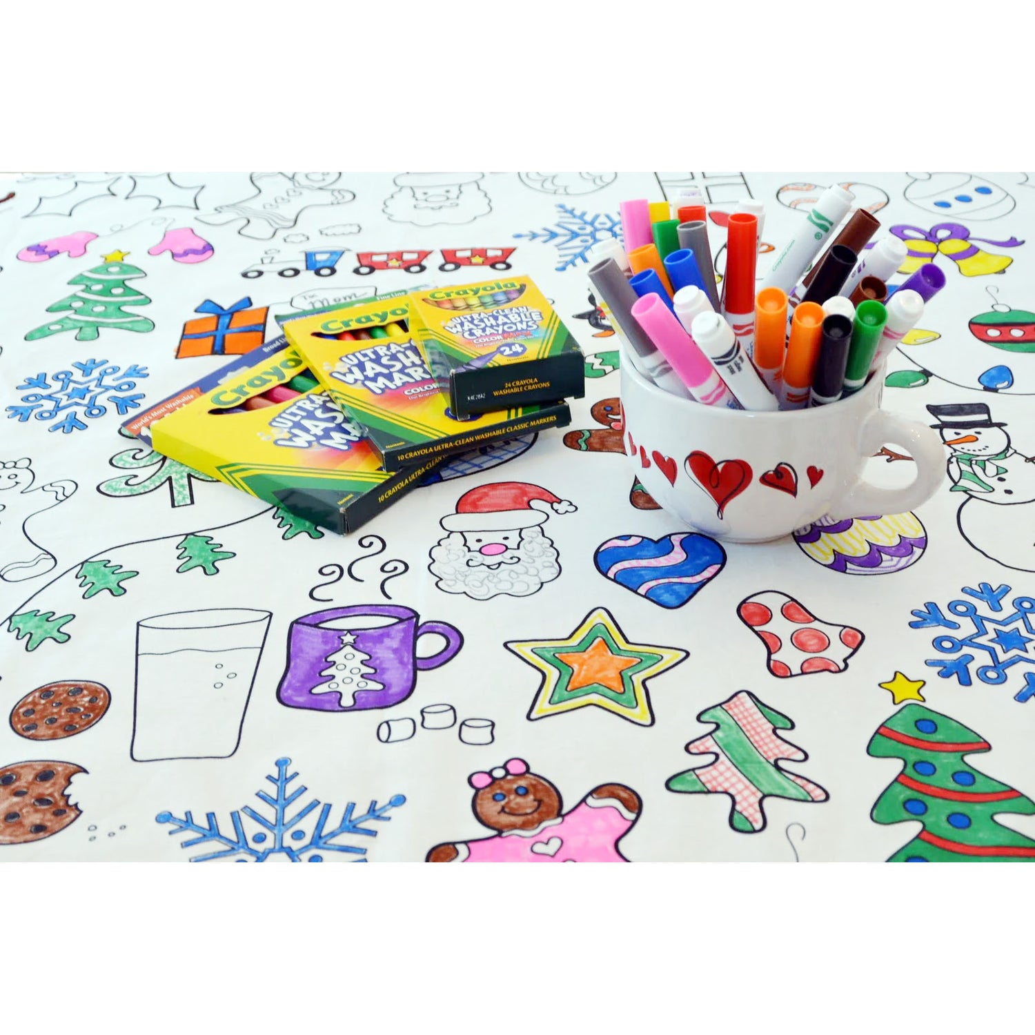 This fabric is a Poly-cotton blend with a specialty backing that assures markers will not bleed through when coloring. It is a reusable, machine washable and wrinkle free fabric. (60" X 60")