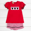 This Magical Mouse Ears Girl Short Set is absolutely perfect for your little one this season. The red knit top showcases charming smocked mouse ears, paired with red gingham ruffle shorts. It's the ideal outfit for your next fairytale vacation, promising playtime fun, comfort, and cuteness!