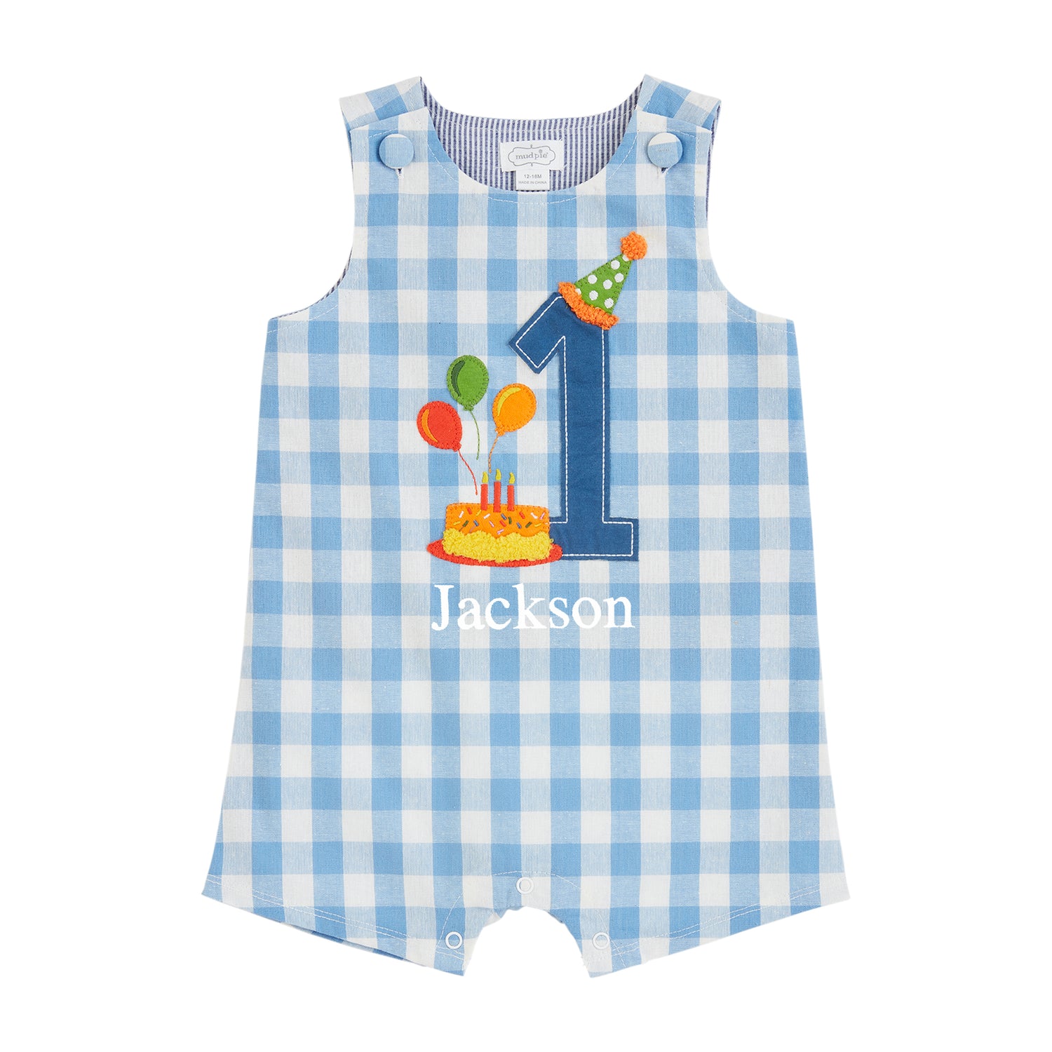 Mark your little one's special milestone with the delightful 1st Birthday Gingham Jon Jon. This adorable piece is made from a soft blend of fabrics and features delicate appliqués and button shoulders for easy dressing. Inner leg snaps make diaper changes a breeze. Care is simple - just machine wash cold with like colors and tumble dry on low. The gingham Jon Jon is designed with comfort in mind, with a main fabric blend of cotton, rayon, and polyester, and a lining made of cozy polyester-spandex. Your precious one will look and feel amazing in this charming outfit on their special day.