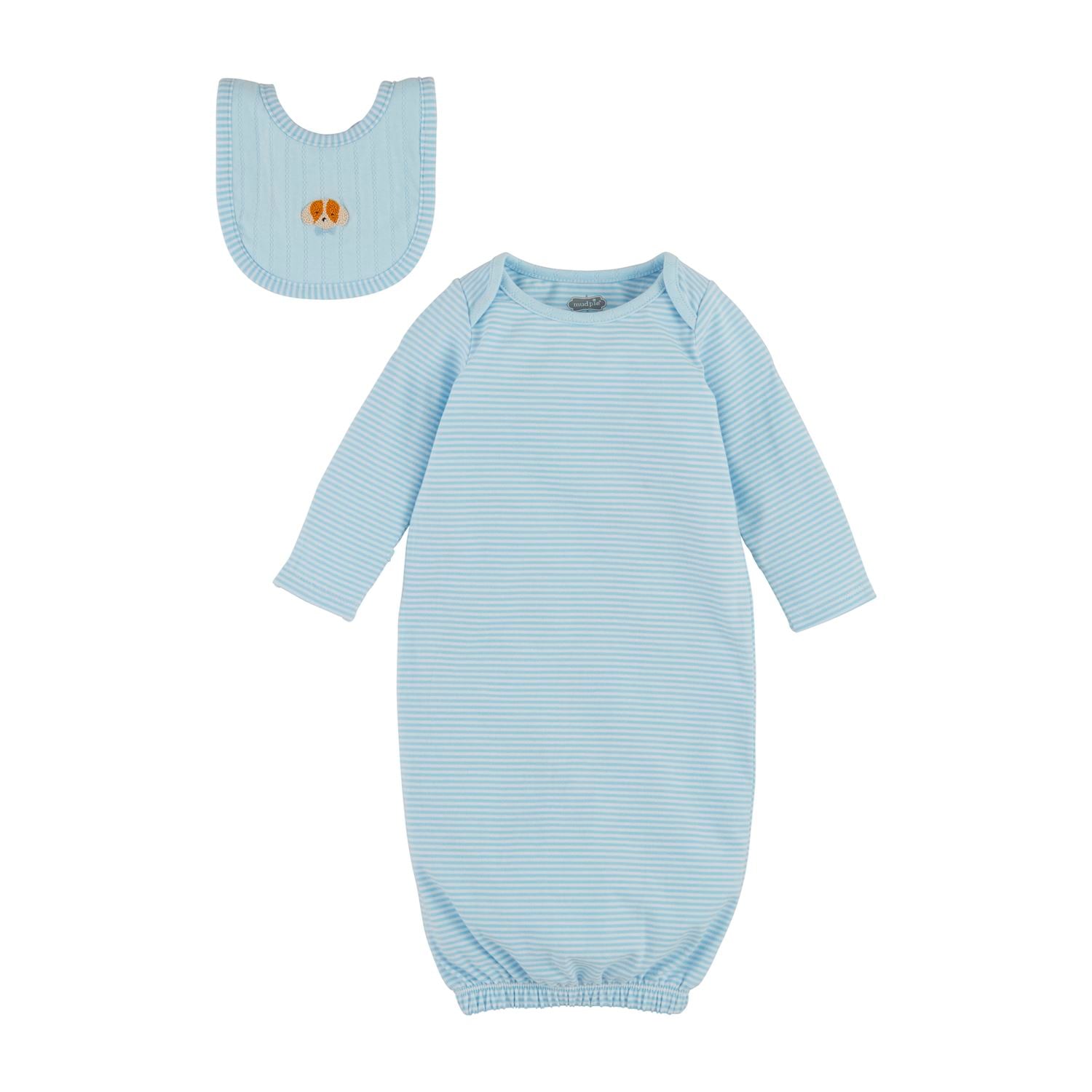 The Blue Stripe Puppy Take-Me-Home Set is a charming and practical 2-piece ensemble designed for newborns. This set includes a cozy long sleeve jersey sleep gown, thoughtfully crafted with scratch protection hand mitts to ensure your baby's comfort and safety. The light blue stripe gown is made from a soft and stretchy cotton blend, providing a gentle touch against your baby's delicate skin while allowing for easy movement.