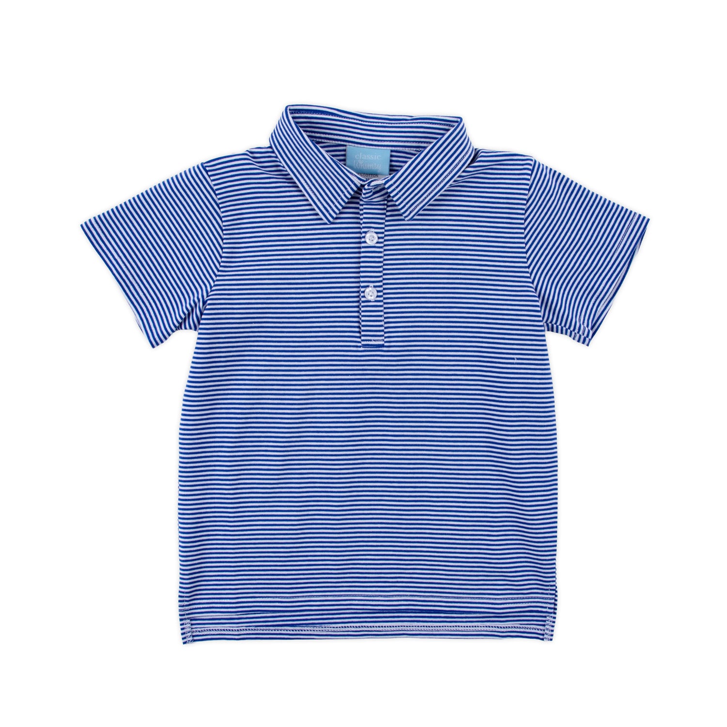 Perfect for various occasions throughout the year, this short sleeve boy's Royal Blue Stripe Polo Shirt brings a playful touch to any day. Consider adding a monogram to personalize your look and make a statement.