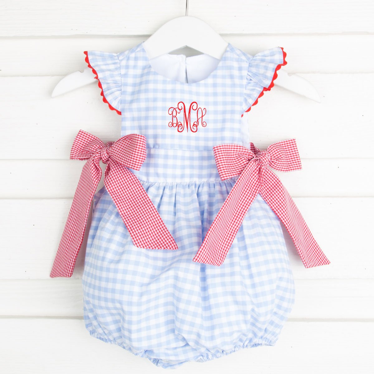 Everyone loves a side tie bubble! We chose a sweet light blue pattern for this one. Snaps in stride.