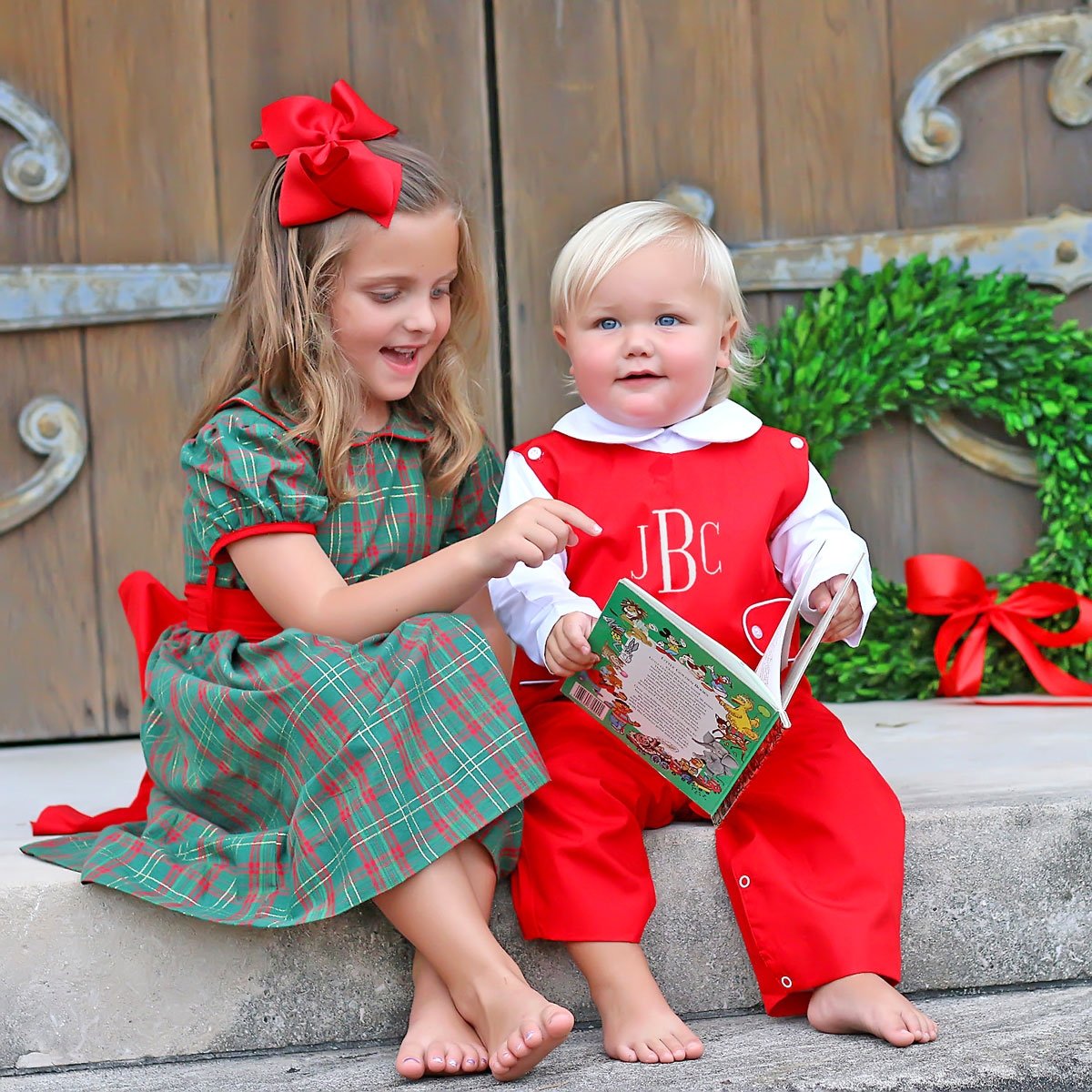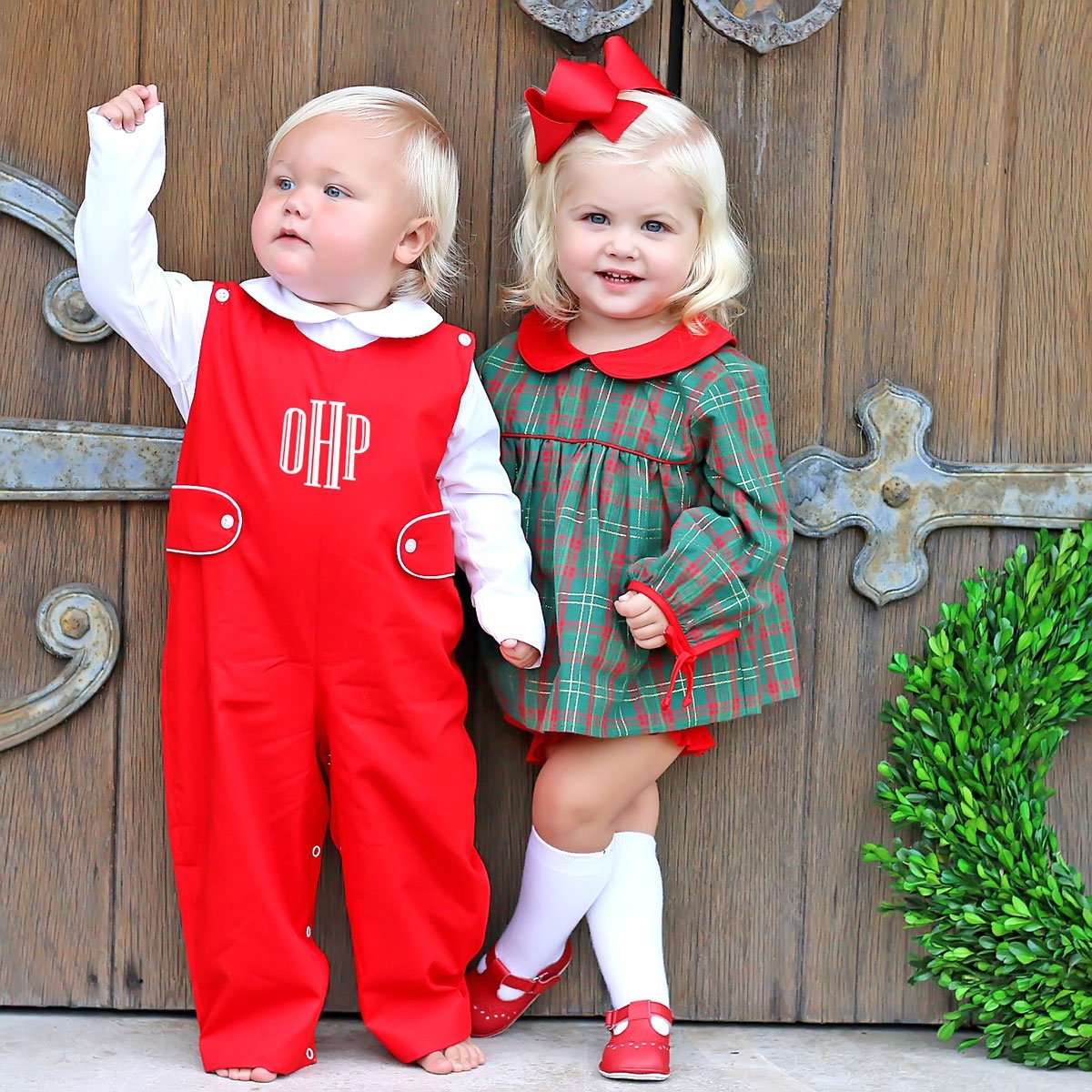 A classic solid red boy longall with tabs. White piping along tabs. Wear all Holiday season or for Valentine's Day! Snaps in stride. Part of our Season of Sparkle Collection.