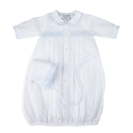 - White Dot Embroidered Collared Gown with Hat $38.00Unit price /Unavailable in this combination
