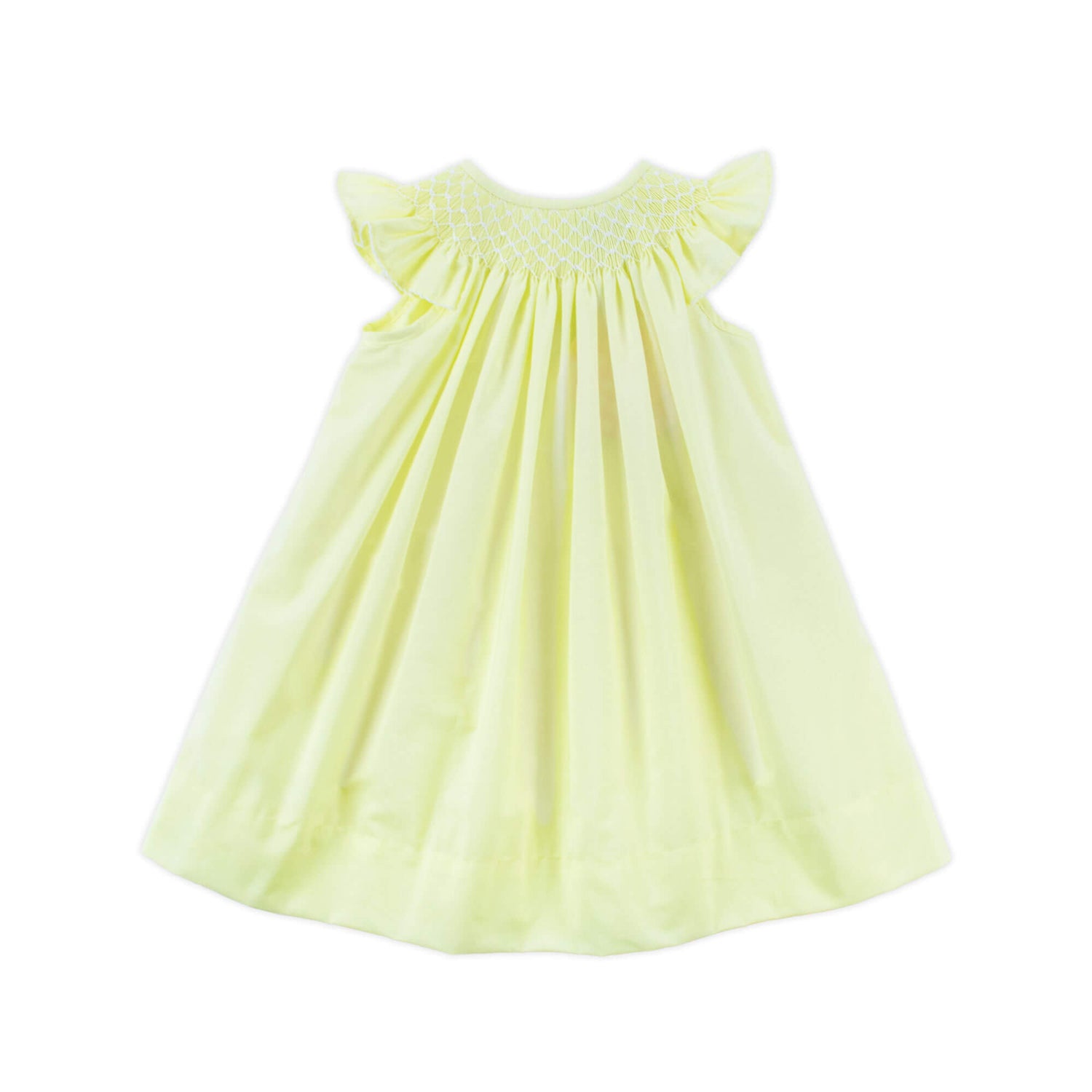 Step into spring in our Shine Like A Pearl Yellow Smocked Dress. Versatile outfit for any occasion, this dress features geometric smocking adorned with pearls and adorable flutter sleeves with white picot trim.