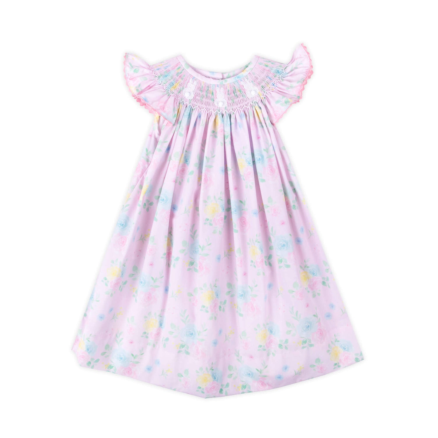 Cottontail Smocked Rose Floral Angel Sleeve Dress