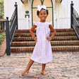 Get your little one ready for an Easter egg hunt or a special day at church with our Cottontail Smocked Rose Floral Angel Sleeve Dress. This charming dress features a lovely pink rose print and delicate smocked white bunnies, adding an extra touch of sweetness. The angel sleeves are accented with green ric-rac trim for a girly, playful detail. Perfect for making Easter memories, this dress will have your little one looking picture-perfect for the season!
