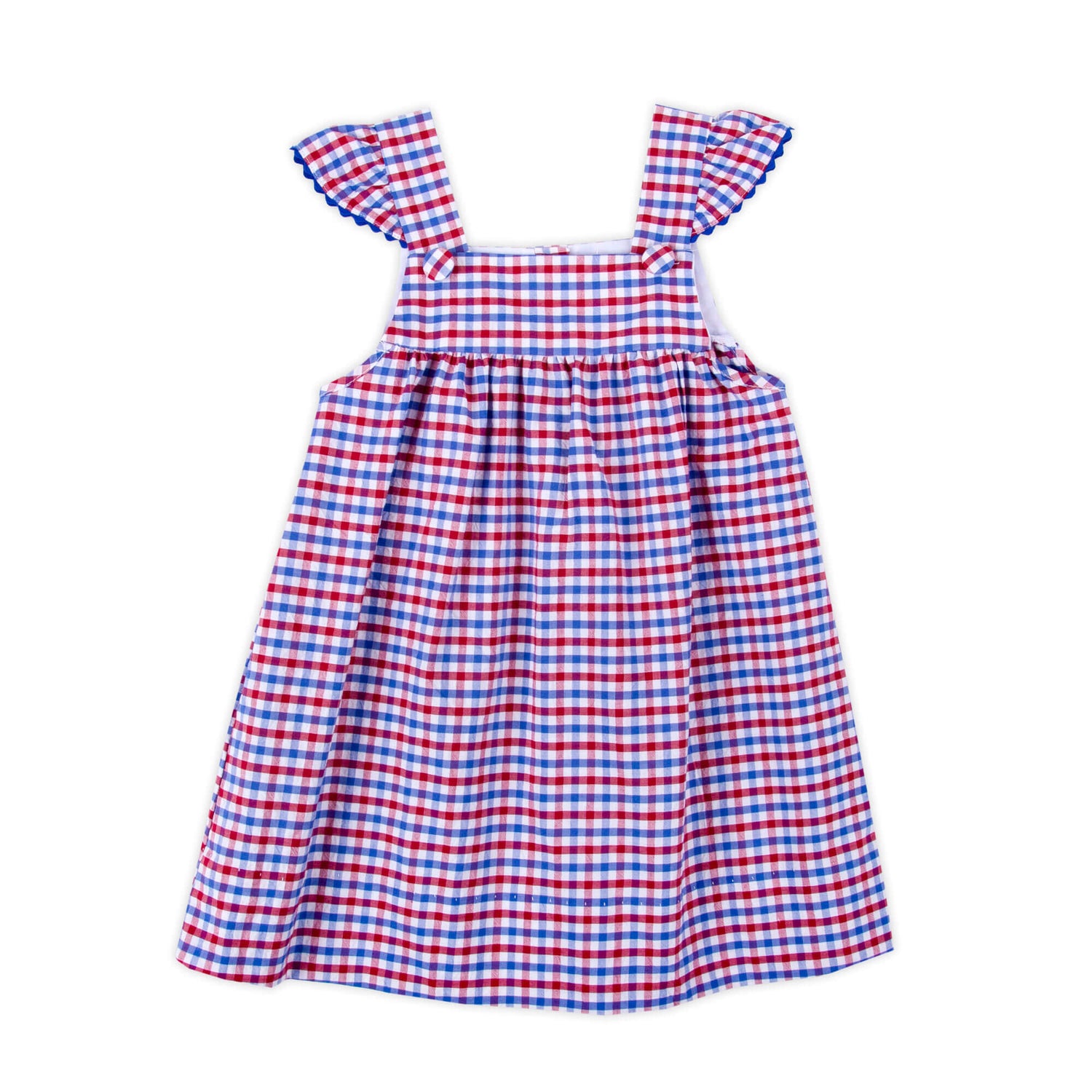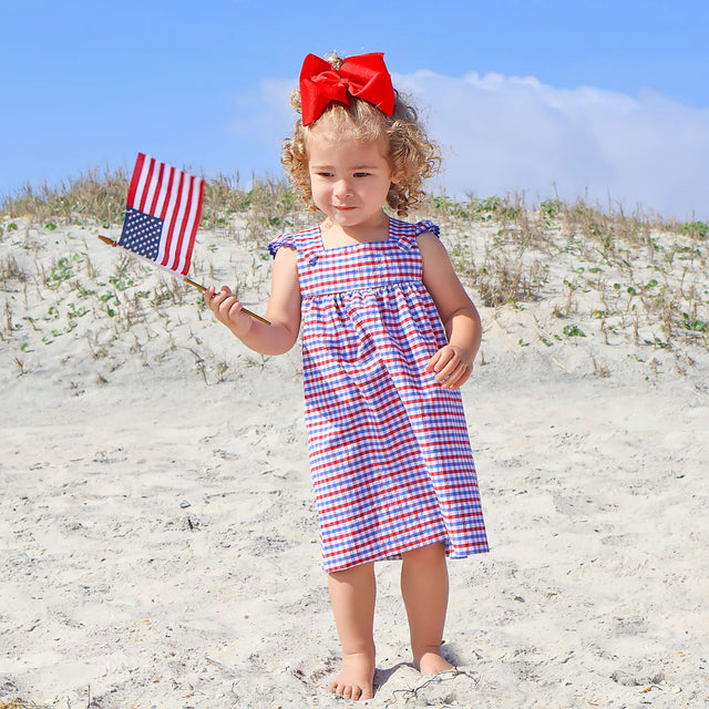 Your little one will shine bright this 4th of July in the Dazzling Red Plaid Leah Dress! This festive red and blue plaid dress is perfect for celebrating in style!
