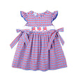Your little one will shine bright this 4th of July in the Dazzling Stars Red Plaid Smocked Beverly Dress! This festive red and blue plaid dress features hand-smocked American flags and adorable side tie bows. It's perfect for celebrating in style!