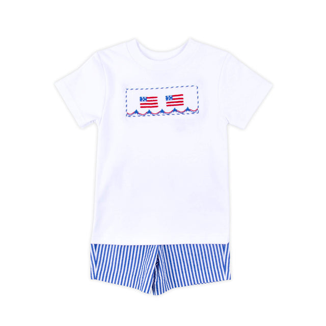 Flag Smocked Navy Stripe Short Set