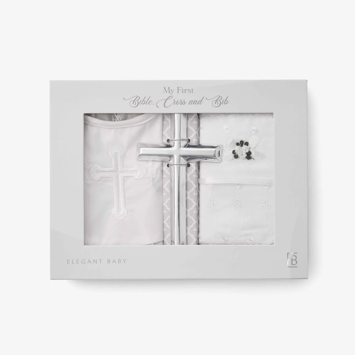 Here at Elegant Baby, we have been creating luxury Christening gifts for over 50 years--we consider them to be part of our heritage which is why we spare no detail when designing these baby milestone keepsakes. Presented in a beautiful baby gift box that reads 'My First Bible, Cross & Bib,' this beautifully designed heirloom set is the perfect luxury Christening gift for any baby girl. Delicate, eyelet lace details further elevate this luxury Christening gift set while giving it a vintage, heirloom look with modern feel.