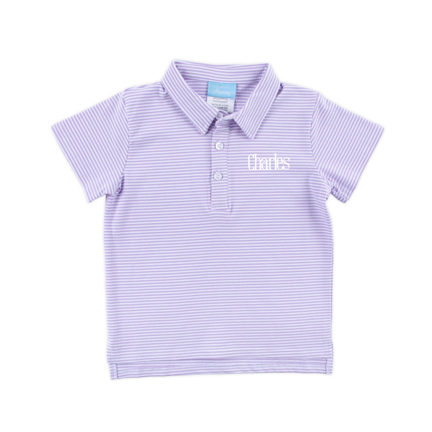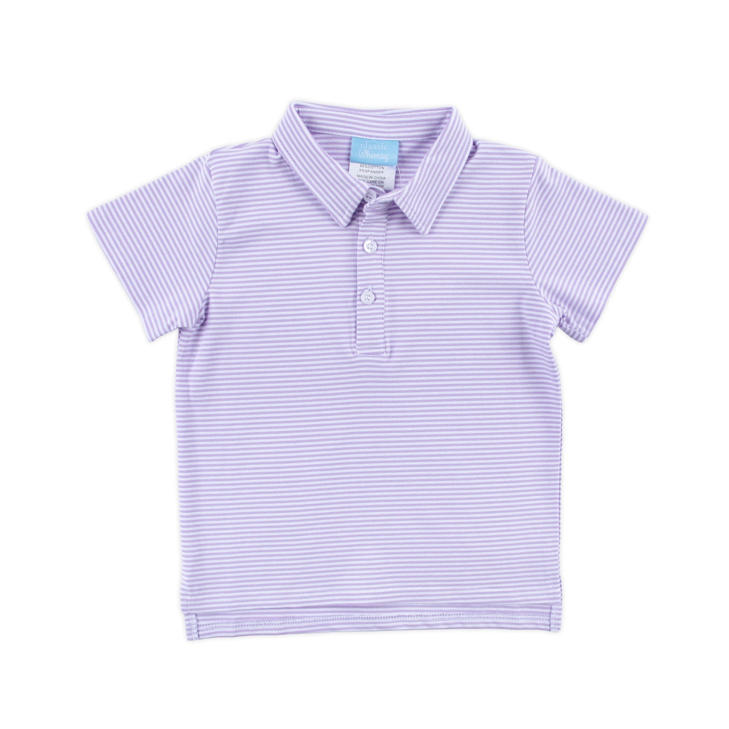 Dress up for playtime in our Lavender Stripe Knit Polo. This classic knit stripe polo, with its timeless style, allows you to mix and match effortlessly with your favorite bottoms. Perfect for various occasions this spring and summer, this shirt brings a playful touch to any day. Consider adding a monogram to personalize your look and make a statement.