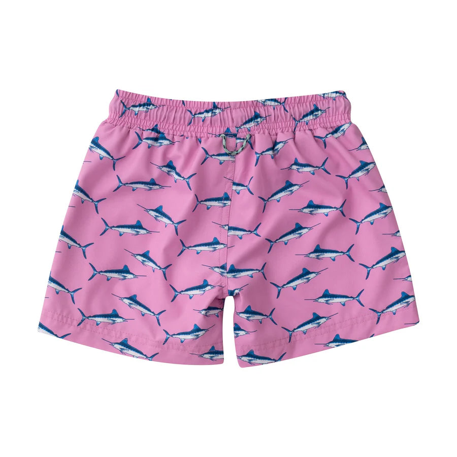 These Boys Boogie Board Swim Trunks in Blue Marlin Print on Fuchsia Pink are made of soft, itch-free fabric that boys and toddlers love! Updated side slits and 4 way stretch fabric will provide more movement for your little guy this season! PRODOH Swim trunks are lightweight and fast drying and feature an anti chafing boxer brief liner. Side seam pockets are mesh lined so sand stays out but shells and bait stay put.