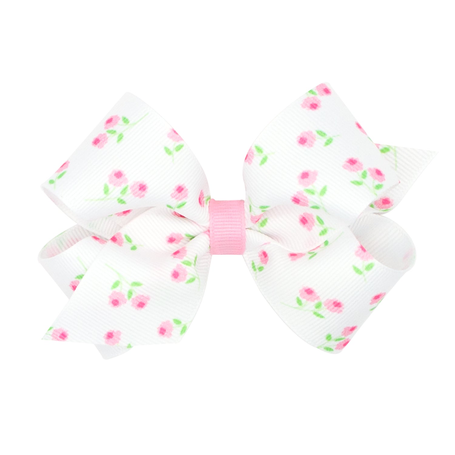 Pink Floral White Grosgrain Bow