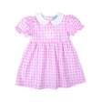 Your girl will adore wearing the Riley Gingham Knit Bishop Sleeve Dress all spring and summer! This Riley-style dress in a knit gingham print features a charming white collar and bishop sleeves trimmed with pink picot. Add a monogram for an extra-special touch. It's the perfect outfit for any sweet adventure!