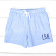 Prepare for delightful water adventures in our Santorini Blue Swim Trunks. These blue stripe boy's swim trunks feature an easy pull-on waist with functional tie for convenience. They provide UPF 50 Protection to keep your little one safe under the sun.
