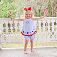This Star Spangled Light Blue Gingham Sadie Bloomer Set is perfect for celebrating the 4th of July and enjoying fireworks. The sleeveless Sadie-style top in blue gingham features a large red bow on the back, adorned with patriotic stars and a large red ric-rac trim. Elevate its patriotic charm by adding a personalized monogram. Complete with matching blue gingham bloomers, it's a coordinated outfit perfect for the season.