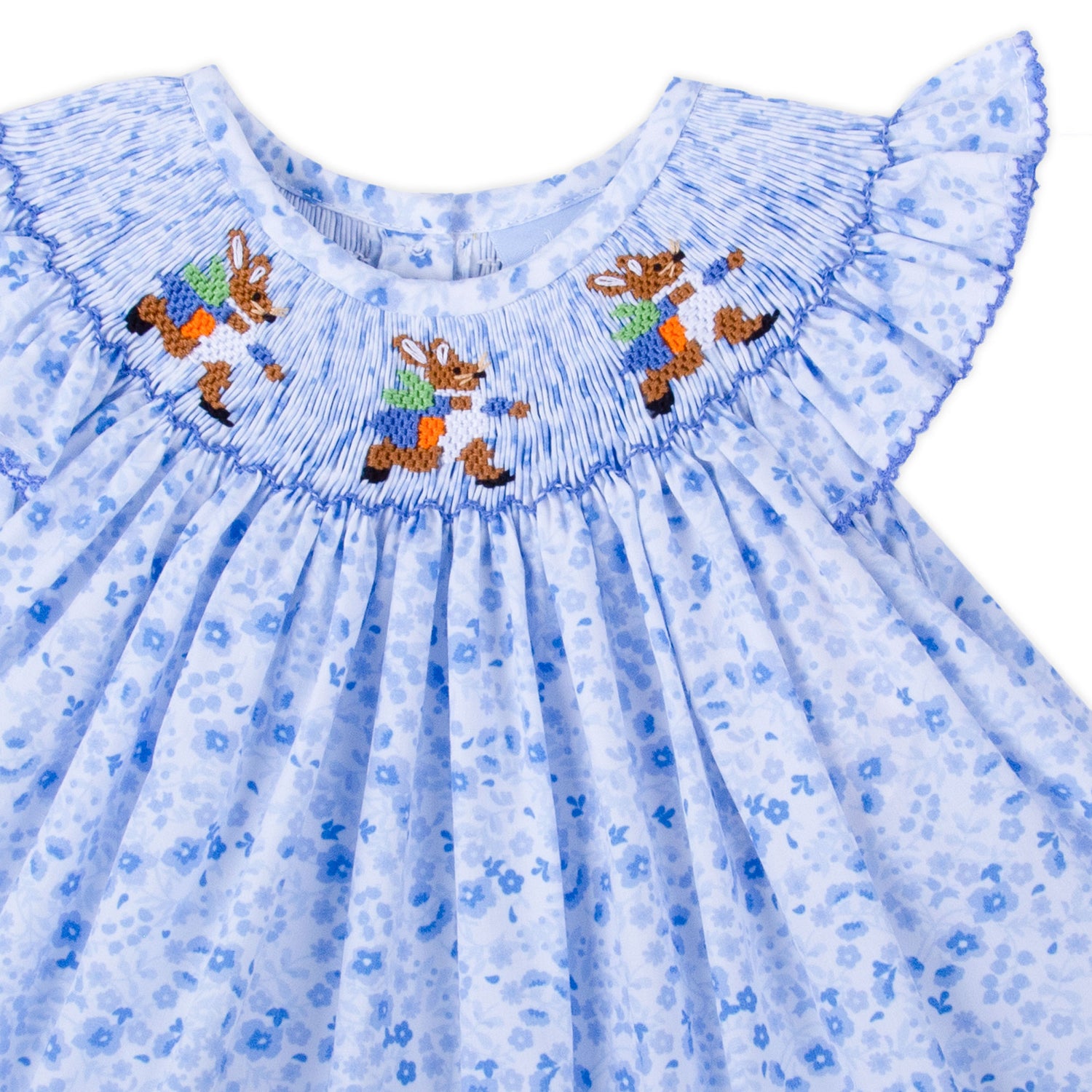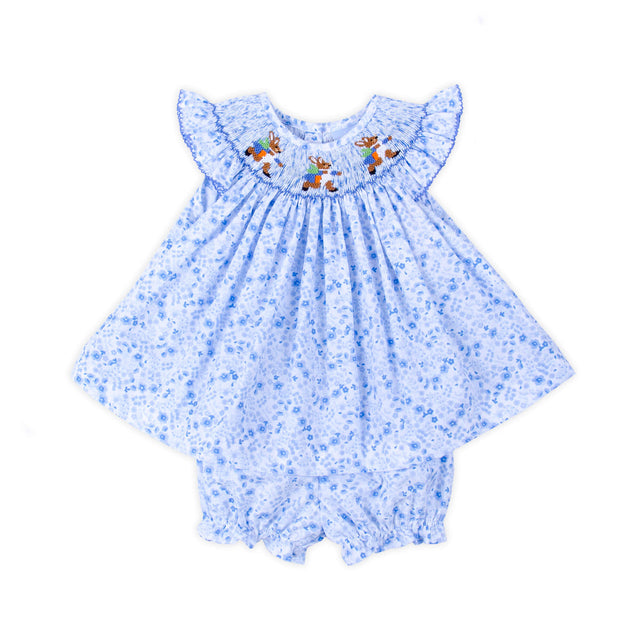 Storybook Rabbit Blue Floral Smocked Bloomer Set