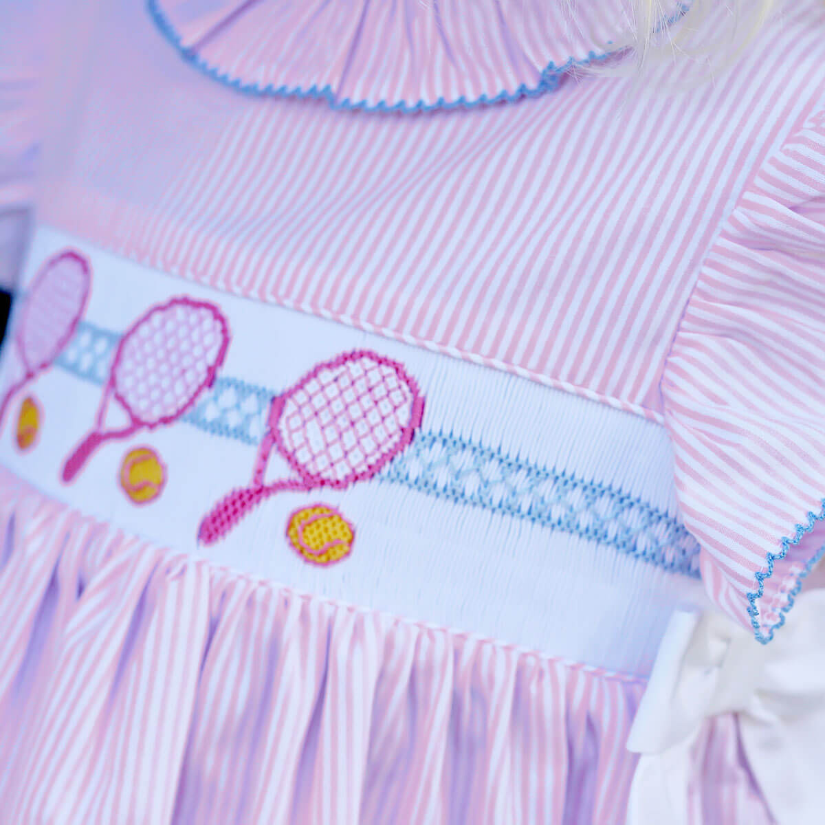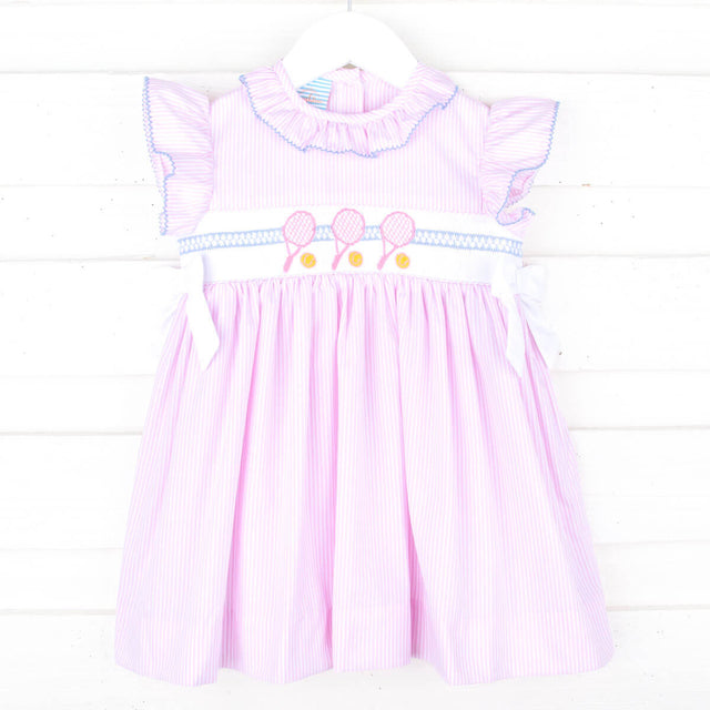 Tennis Racquet Pink Stripe Smocked Beverly Dress