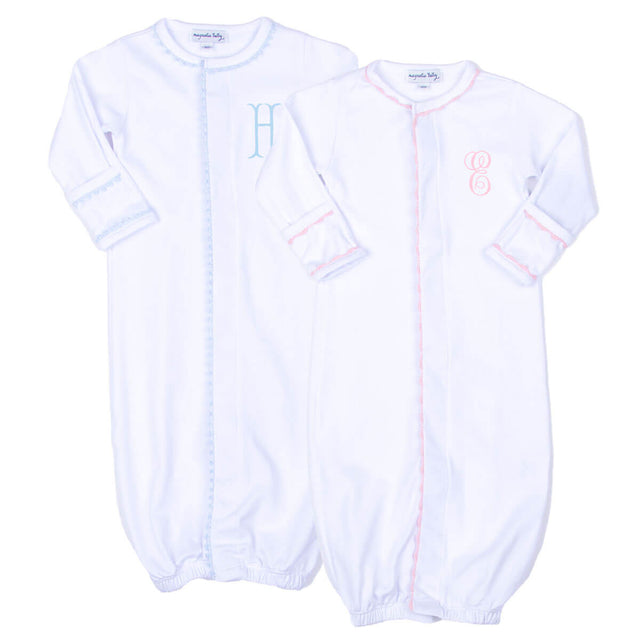 For all of baby's first moments this outfit is the perfect choice! The outfit features a subtle hand-crocheted trim, making it an ideal blend of elegance and durability. Made from the softest pima cotton. It’s an indispensable item for every parent who wants nothing but the finest for their little one. You can customize it with a monogram to add a personal touch of luxury. Coordinates with other items in the Baby Joy Collection.