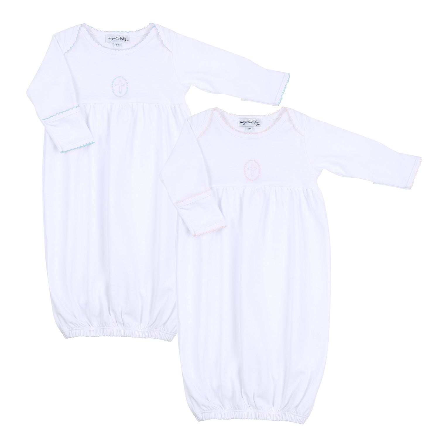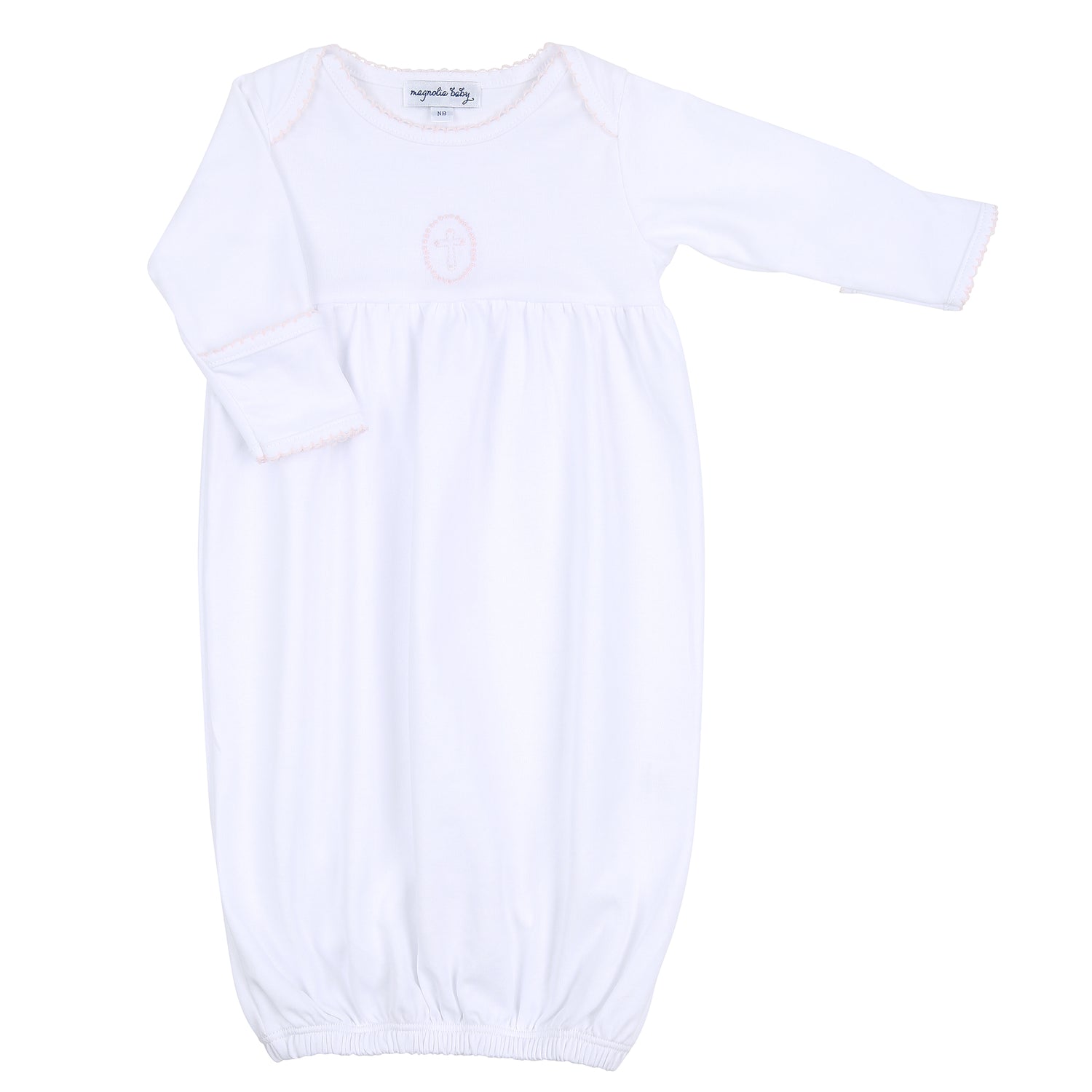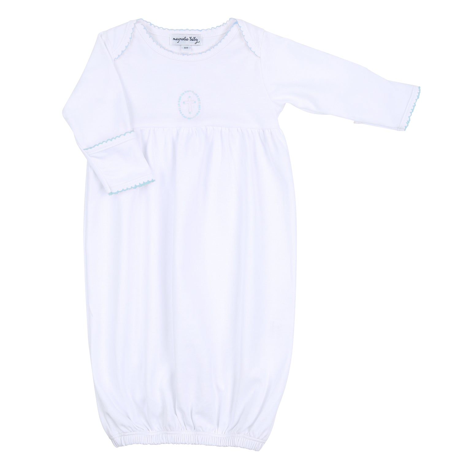 For your little blessing! This long sleeve gown is made from the softest pima cotton. Coordinates with other items in the Blessed Collection by Magnolia Baby, featuring delicate cross embroidery.