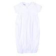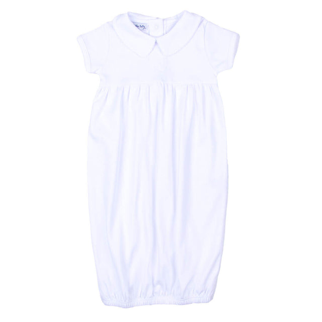 For your little blessing! This short sleeve gown is made from the softest pima cotton featuring delicate cross embroidery. Coordinates with other items in the Blessed Collection by Magnolia Baby. Made in Peru.