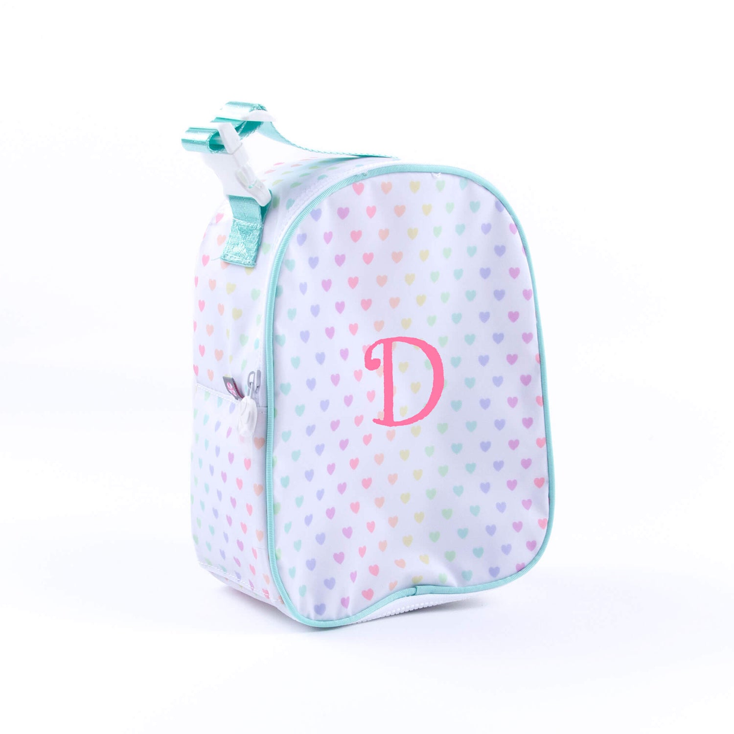A kid's lunchbox so cute, even last night's meatloaf looks good in it. This cooler bag is also great for baby, it can carry a bottle and baby food and keep it chilled. Front pocket zips. Top strap has a ladder lock buckle to make it easy to clip on to bags or strollers. Add a monogram for a personal touch!
