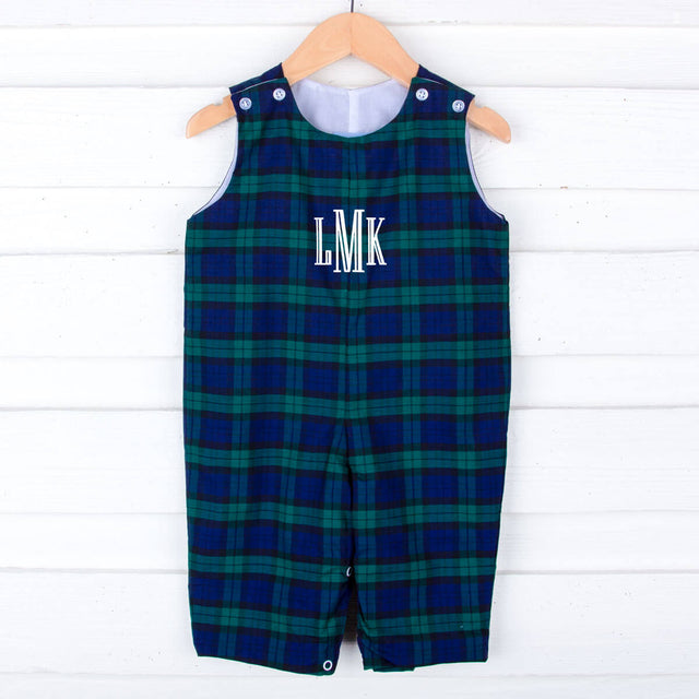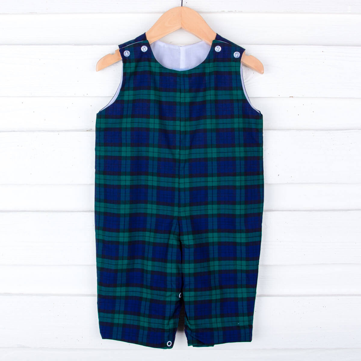 Make sure your little one is picture-perfect for Christmas or Thanksgiving in our Hamilton Plaid Navy & Green Longall! This classic navy and green plaid longall is both elegant and perfect for family photos during the holidays. Shoulder buttons and snaps in the stride ensure easy changes. Layer it with an undershirt for added warmth, or add a monogram to personalize his holiday look!
